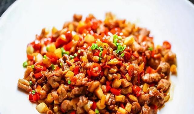 3、另取净锅放油,烧热后下青红辣椒节炒香,起锅盛在盘中菜肴上,即成。